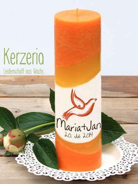 Orange Hochzeitskerze mit Taube