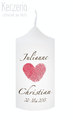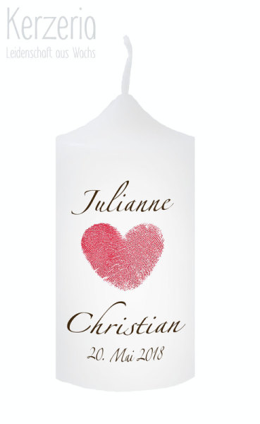 Gern trage ich auf der Rückseite der Kerze einen Trauspruch auf. Farbe und Schrift werden an die Hochzeitskerze angepasst.
