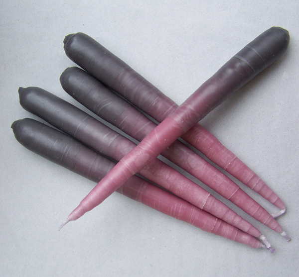 Herstellungsart: Tafelkerzen sind handgegossen, der Farbverlauf ist getaucht.