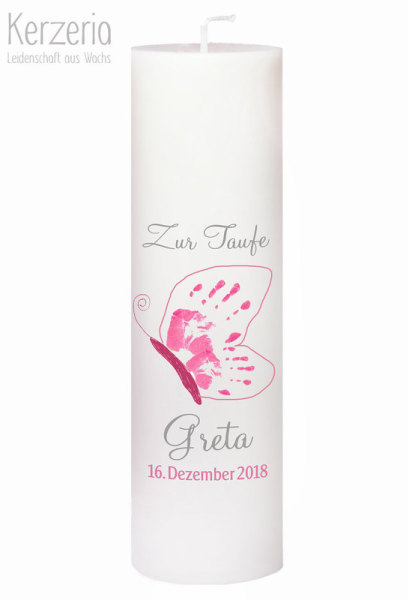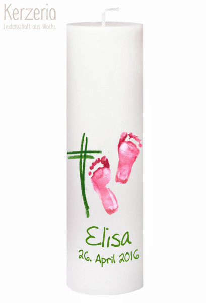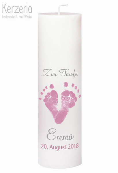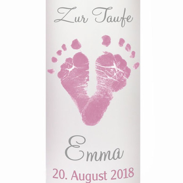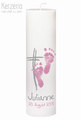 Taufkerze mit eigenen Fußabdrücken Rosa/Grau