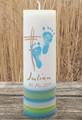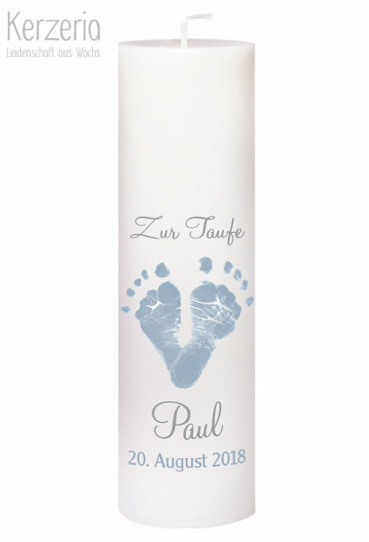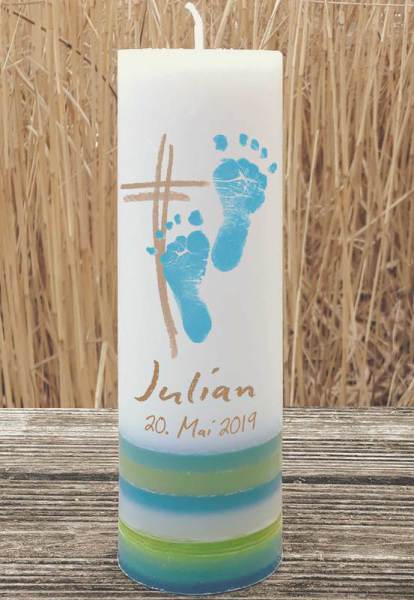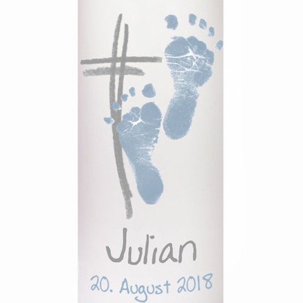 Persönlicher kann eine Taufkerze nicht sein. Auf die cremeweiße Kerze übertrage ich die Fußabdrücke deines Babys/Kindes. Die Kerze gieße ich in meiner Werkstatt von Hand.